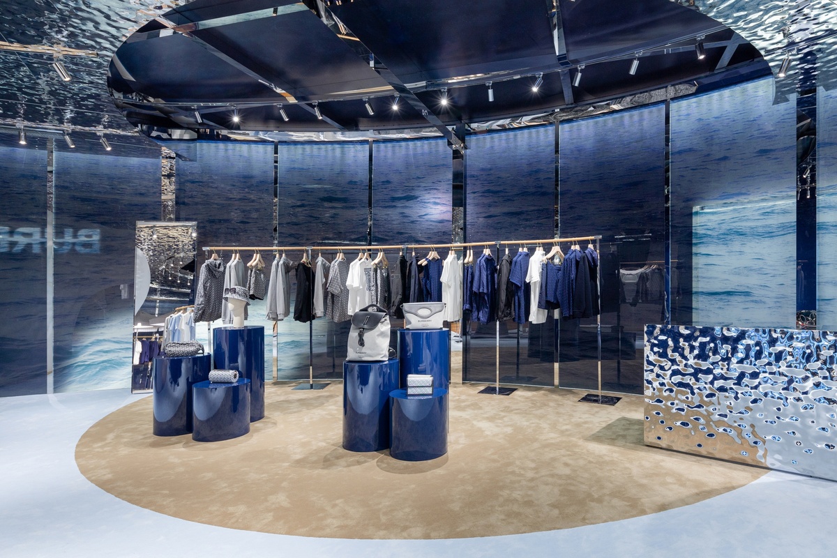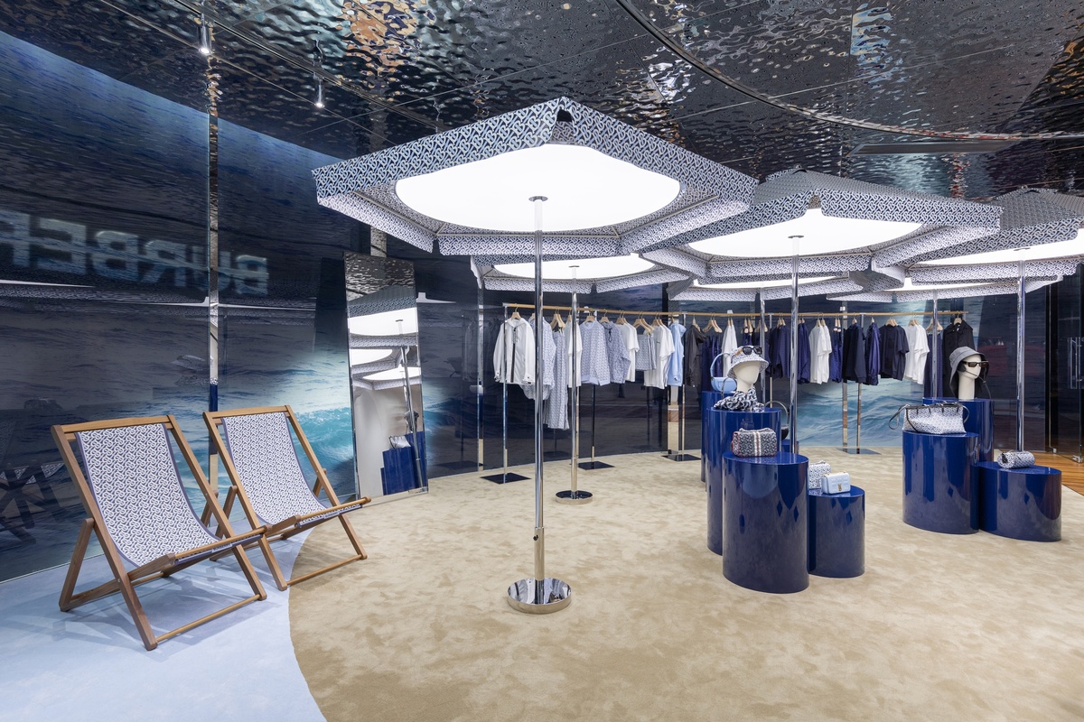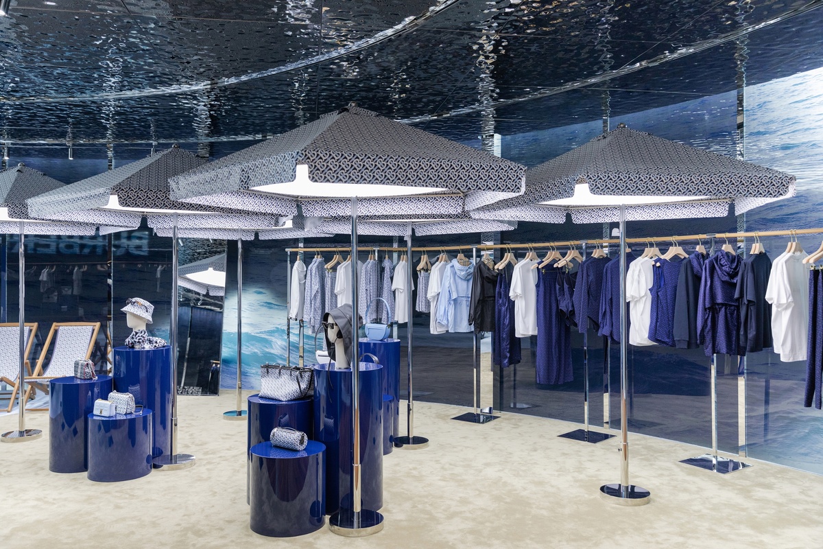 此次“TB”夏季专属标识印花图案以钴蓝色、深皇家蓝和中灰色三款活力夏日配色焕新呈现。在这次沉浸式购物空间之中,阳伞、沙滩椅等海滨装备,服装、包袋及配饰等各式时尚单品,均出现这一印花图案,凸显品牌探索自然的美学理念。