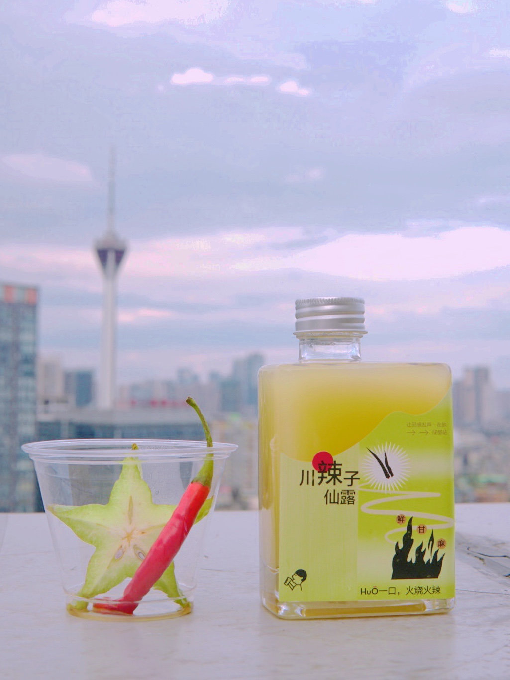 为了更好地体现成都的城市文化特色,川辣子仙露在产品配方方面进行了特别的设计。首先在用料方面,川辣子仙露除了使用油柑汁、杨桃汁、椰子水等作为原料,还使用了产自四川优质茶叶产地蒙顶山的蒙顶黄芽作为茶底,同时配上四川最常用的青花椒、朝天椒进行调配,为成都消费者带来了丰富的味觉体验。