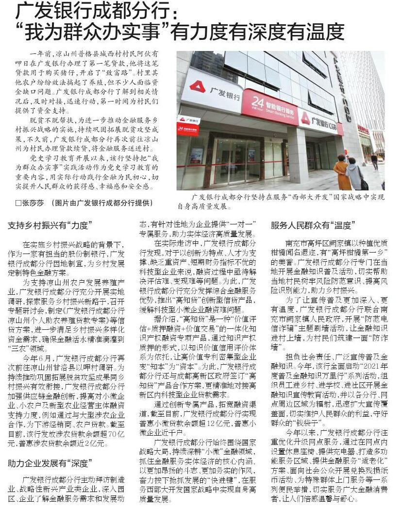 广发银行成都分行坚持在服务“西部大开发”国家战略中实现自身高质量发展