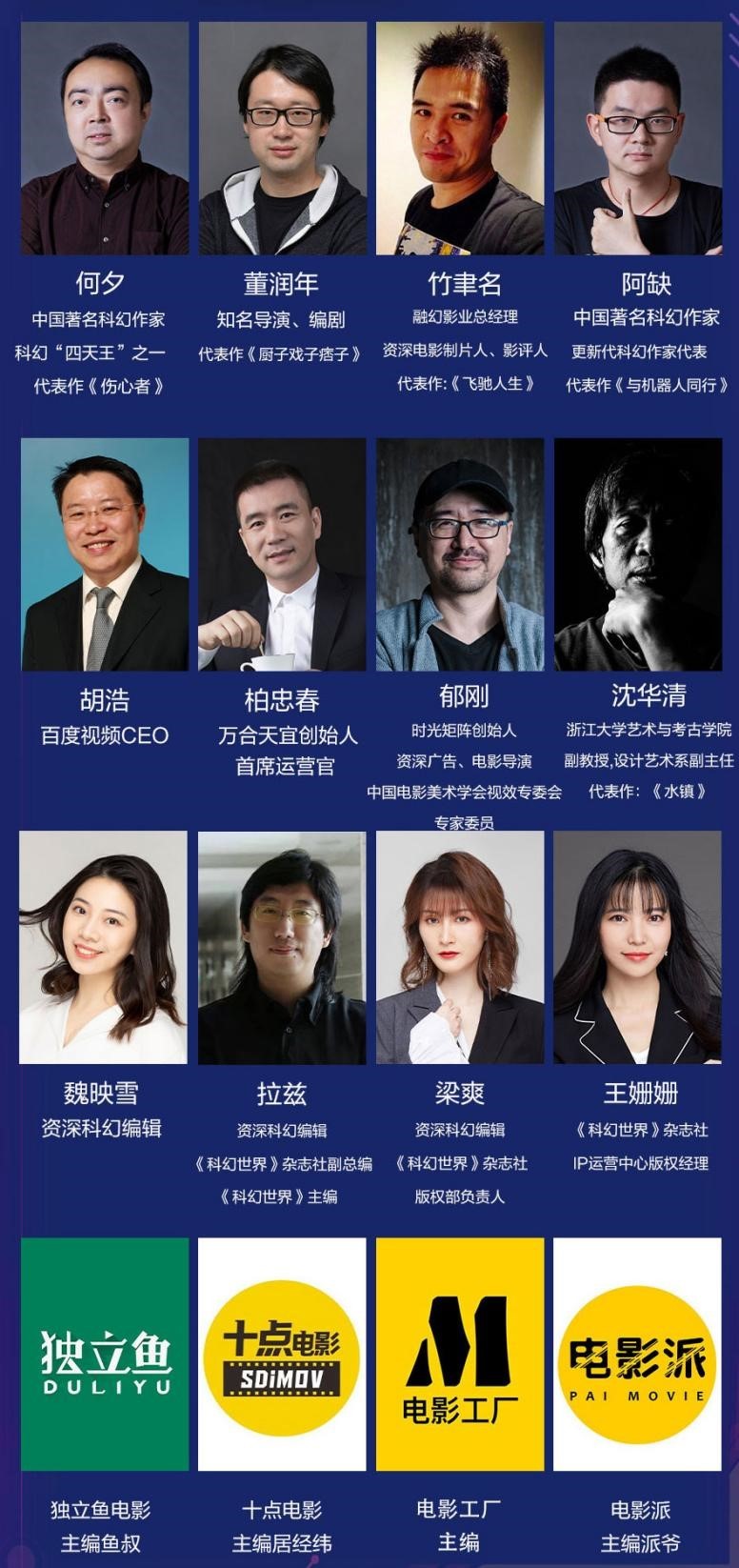 据了解,本次大赛组委会邀请了多位国内著名科幻作家、科幻编辑、科幻学者、影视从业者、影视评论人等组成专业评审团队。目前已确认担任评委的有何夕、阿缺等知名科幻作家,《老炮儿》编剧董润年、《万万没想到》总制片人柏忠春、百度视频CEO胡浩、资深广告导演郁刚等影视圈权威人士,独立鱼电影、十点电影等著名影视自媒体主编,以及融创文化集团副总裁、融幻影业总经理竹聿名,四川科幻世界杂志社有限公司副总编辑拉兹等资深科幻编辑,评审视角将更加多元。