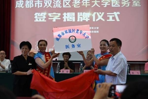 活动在《没有共产党就没有新中国》的歌声中拉开了序幕, 开学典礼仪式上,首先举行了双流区老年大学医务室签字揭牌仪式。随后,双流区老年大学校长汪永兴,区教育局党组成员、副局长黄曦,双流区卫健局党组书记高飞,区民政局党组书记、局长邓永清,区委组织部副部长、老干局局长谢红英分别在仪式上作了致辞!成都市教育局终身教育与民办教育处二级调研员覃珺在讲话中对成都市老年开放大学双流分部率先在双流区社区教育学院开班表示了充分肯定,她表示,双流区历来十分重视老年教育,在组织体系、多部门联动、宣传推广等方面作了深度实践和探索,有很多做法走在全市前列,多次获得国家、省市领导专家和同行的好评。