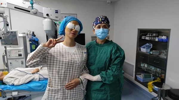 手术由成都普瑞眼科医院艾碧君院长亲自操刀,短短20多分钟,手术就完成。摘下纱布的那一刻,眼睛虽然还敷着眼膏,但透过丝丝缝隙看清的光亮世界让谢洁感到兴奋。她说,这得来不易的光明自己会好好珍惜,并且好好利用,在呼吸康复和肺功能的护士岗位上继续发光发热。