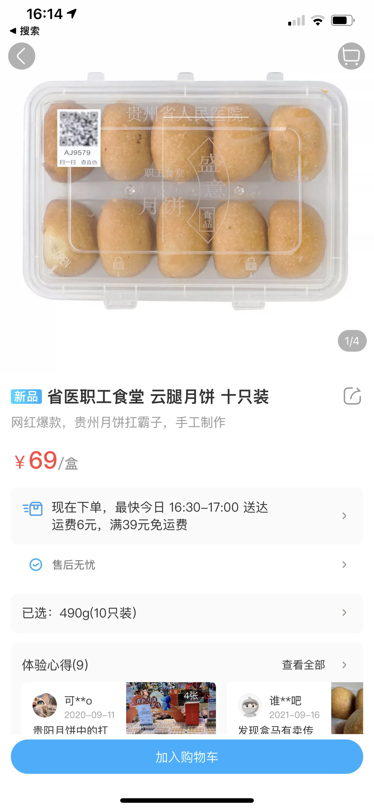 四川在线在盒马鲜生万科钻石广场店看到,贵州省人民医院月饼陈列在面点熟食档口,售价69元/盒。相比于周围包装精美的各式月饼,它的包装非常简单。普通透明塑料盒包装,印着“省医职工食堂云腿月饼”字样。