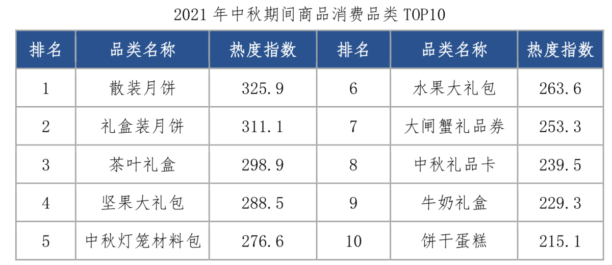 据成都映潮科技统计显示,在商品消费中,散装月饼继续独领风骚,礼盒装月饼紧随其后,同时各大品牌茶叶商家也推出茶叶礼盒爆款,亦较受消费者青睐,居品类第3位;针对企业客户推出的大闸蟹礼品券、中秋礼品卡热度较高;值得一提的是,“灯笼制作”搜索热度提前一周持续攀升,至中秋前夕达到峰值,其搜索热度较平日增长16倍,带动中秋灯材料包销量走高,“亲子灯笼闹中秋”直接拉满了中秋的喜庆气氛感。此外,坚果礼包、牛奶礼盒、饼干蛋糕等亦保持较高热度。