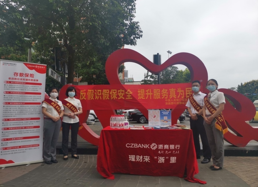 9月以来,浙商银行成都分行辖内各营业网点陆续组织开展了2021年反假货币宣传月活动,将现金收付规范和反假知识带给群众,普及人民币法律法规,增强群众防范假币的意识和能力,牢牢守护“钱袋子”。