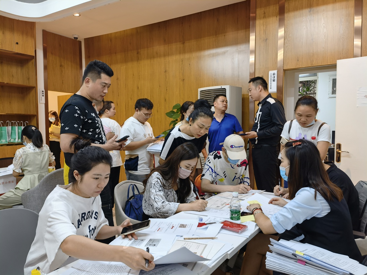 近日,在成都市双流区明城购物中心,陆续有商户到现场办理企业注册登记业务。一支由成都市双流区行政审批局、双流区市场监管局、双流区东升街道联合组成的红海棠金牌管家党员志愿服务队,为即将入驻明城购物中心的近200家商户提供现场注册登记服务。