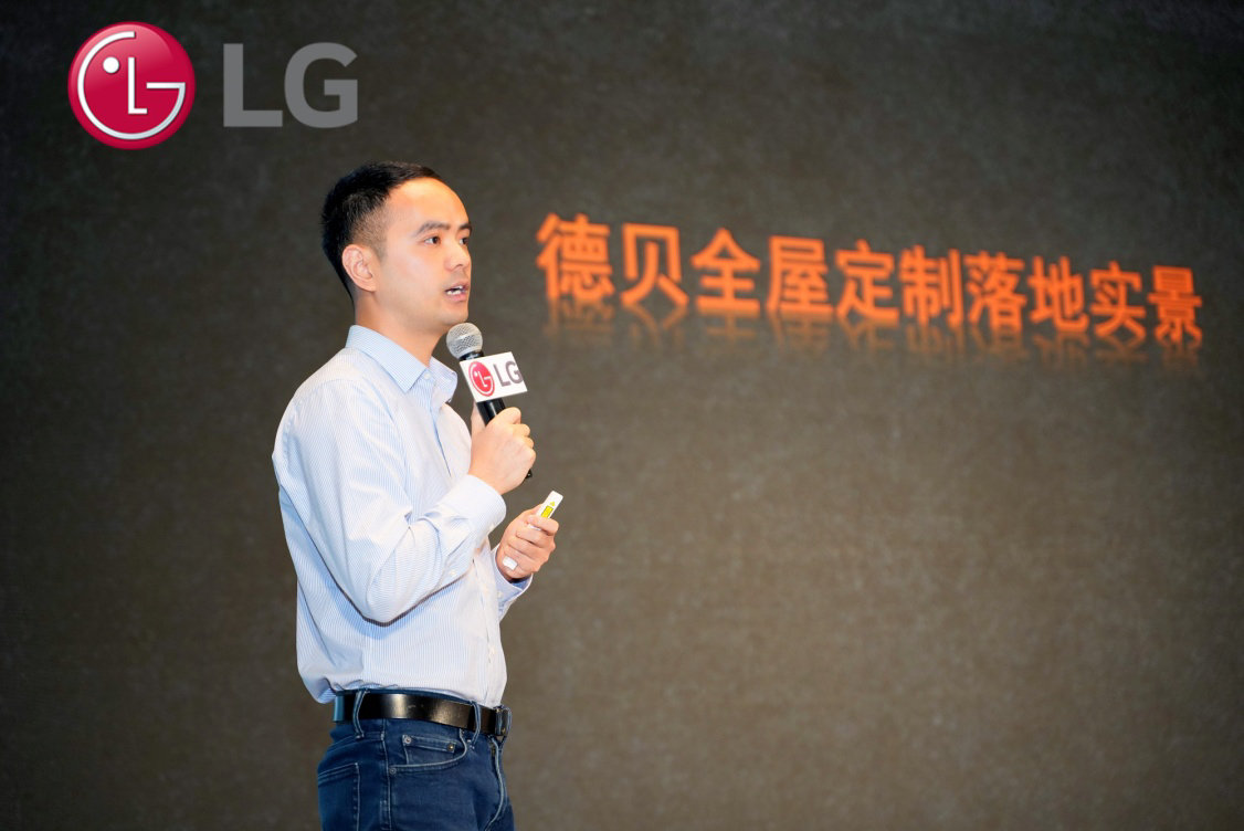 德贝全屋定制设计总监邹远俊通过分享不同生活场景下定制产品与LG美学家电相融合的诸多案例, 全面展示了全新家居美学概念和家装流行元素。