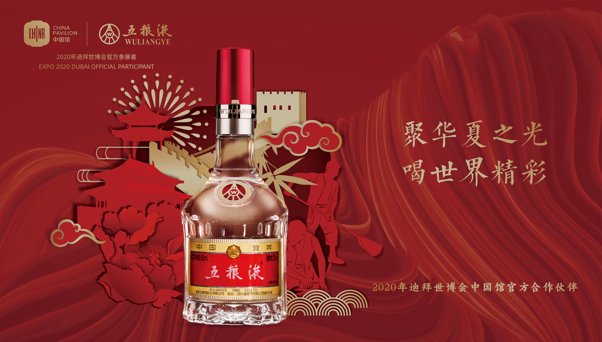 2020年五粮液获得迪拜世博会中国馆官方合作伙伴身份,并将作为指定用酒亮相世博会。