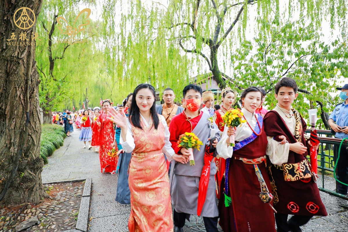 与往届不同,由中共杭州市委宣传部(文明办)、宜宾五粮液股份有限公司、共青团杭州市委等主办的本次婚典,以“56个民族和美一家亲同庆建党百年”为主题,新人们来自西藏、新疆、内蒙古、云南、广西、贵州、四川、湖南、吉林、甘肃、湖北、河北等全国各地,婚典融合了56个民族不同的婚礼习俗,以各民族独有的文化特色、经典传承的婚礼服饰为亮点。