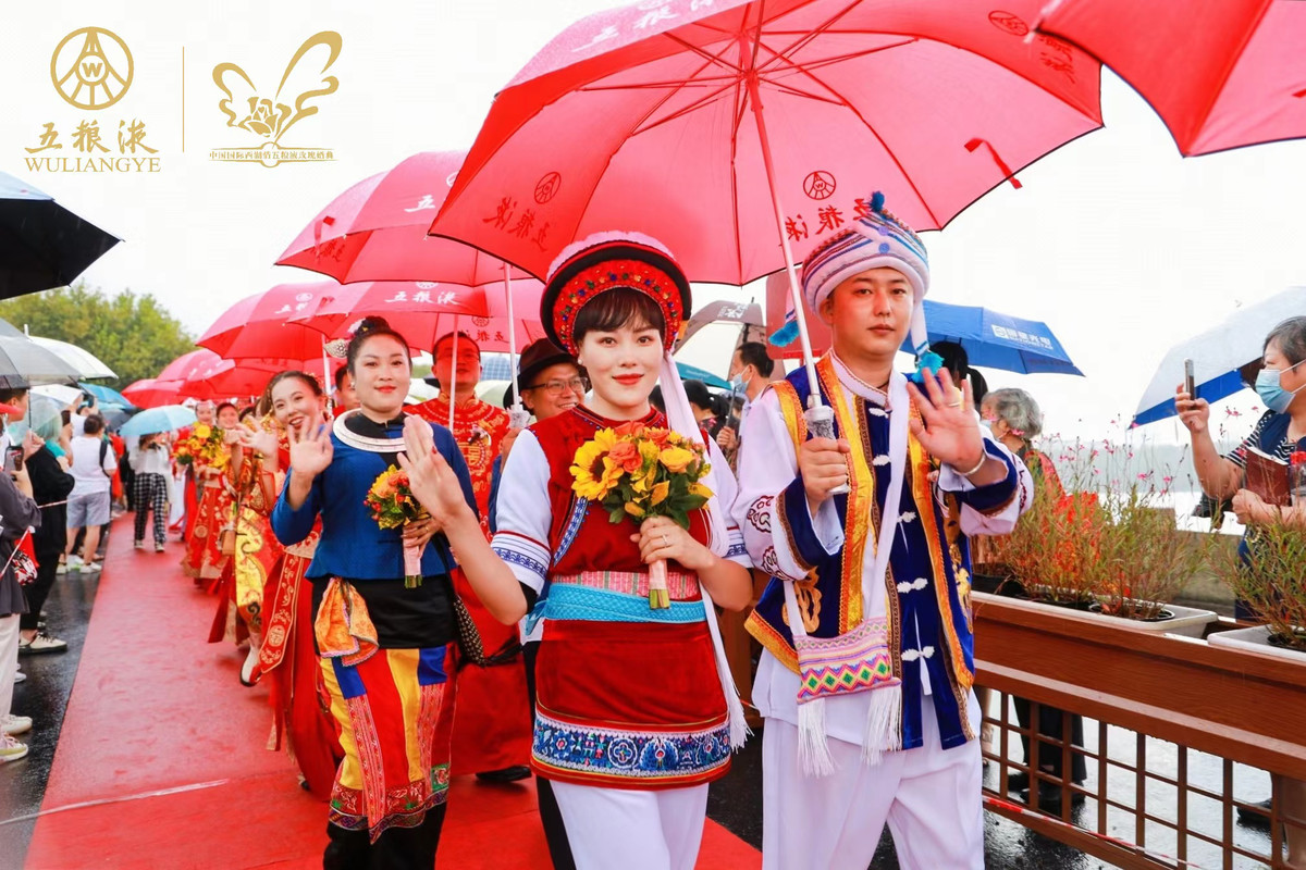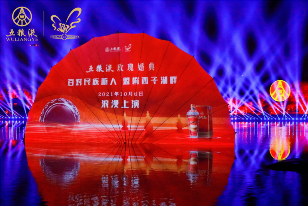10月6日,第23届(2021)中国西湖情五粮液玫瑰婚典在杭州浪漫上演,56个民族,100对新人,喜结良缘。五粮液继续作为本届玫瑰婚典的独家冠名方惊艳亮相。
