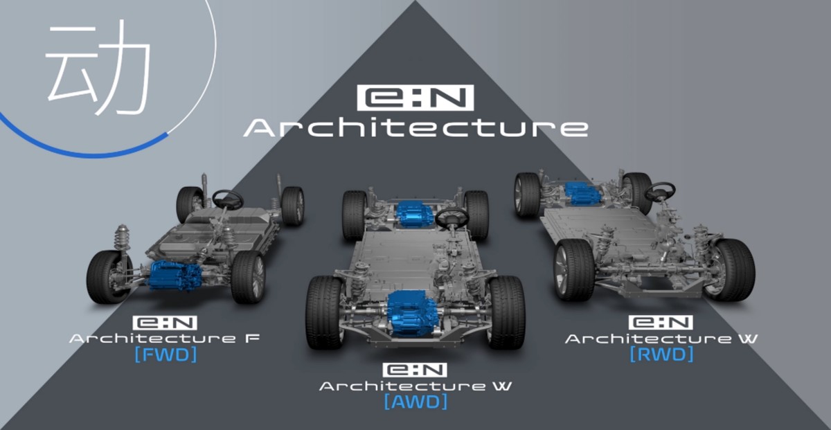 “e:N”系列提供“e:N Architecture F”和“e:N Architecture W”两种不同驱动方式的智能高效纯电架构。其中“e:N Architecture F”基于前置前驱FWD,将在中小型车中搭载应用。“e:N Architecture W”包含AWD和RWD两个版本,将在中大车型上搭载应用。