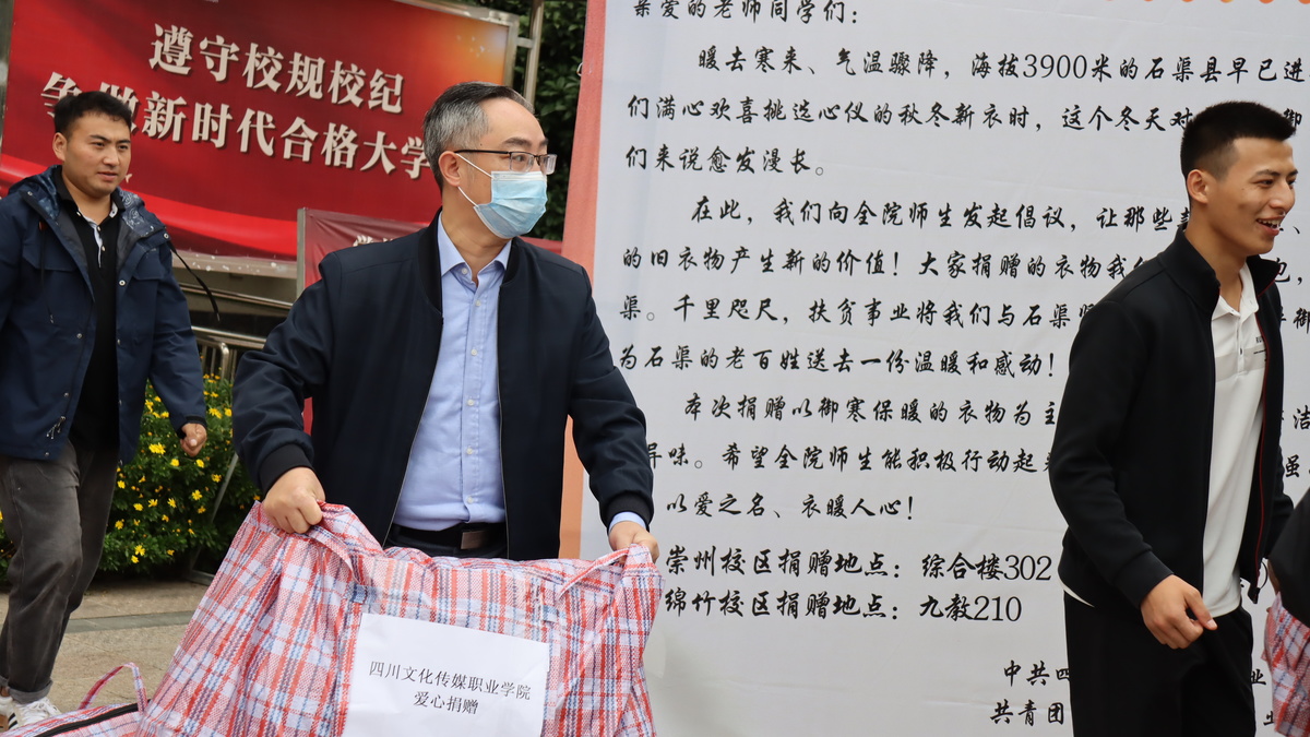 10月17日是第八个国家扶贫日,也是第29个国际消除贫困日,在扶贫日即将到来之前,四川文化传媒职业学院特别号召全院师生进行御寒衣物募捐,本次爱心募捐活动由学院领导部署协调,共收集到近70箱、共2000余件御寒物资,目前已经寄往校园对口帮扶的石渠县长须贡马乡。