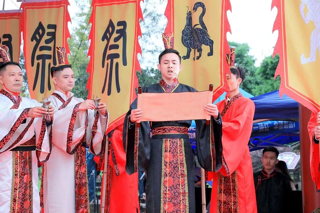 活动现场,举行了隆重的祭酒祖仪式。四川金盆地集团董事长、崇阳酒第九代非遗传承人余刚率众敬酒,敬天敬地敬人,代表着崇州企业将在这片古蜀大地上续写传承,发扬酒文化精髓,加大对老酒窖的保护和开发力度,加强对崇州酒文化的挖掘和展现。