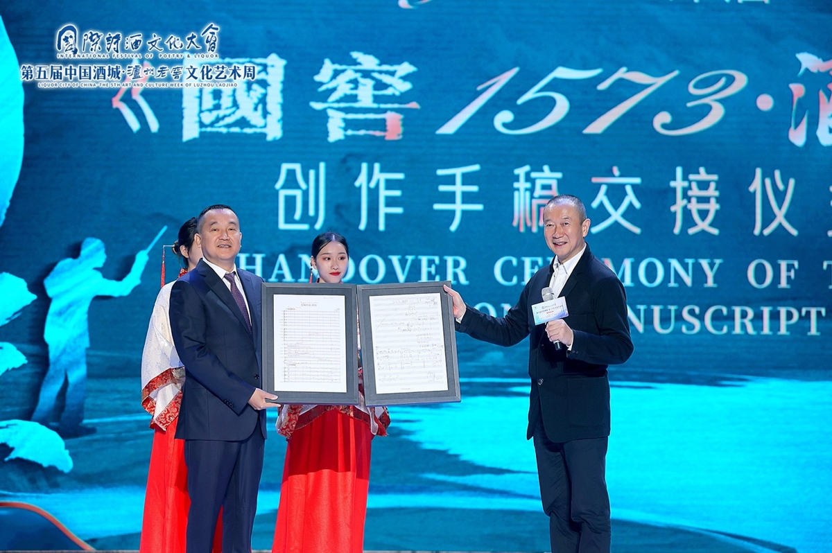 创作手稿交接,谭盾感谢泸州老窖对文化艺术的支持