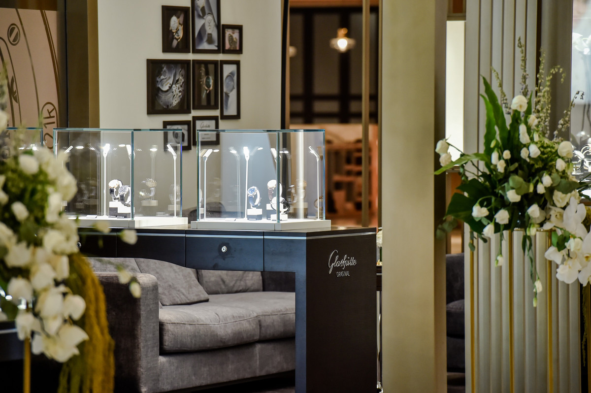 值得一提的是,议员系列、偏心系列、开拓系列、复古系列、女士系列——格拉苏蒂原创麾下五大系列集中亮相此店。四分之三夹板、双鹅颈微调装置、蓝钢螺丝固定黄金套筒和格拉苏蒂柱状纹打磨等格拉苏蒂镇制表的传统元素,亦在这里集中向西南消费者和高级制表爱好者展现德国高级钟表技艺。