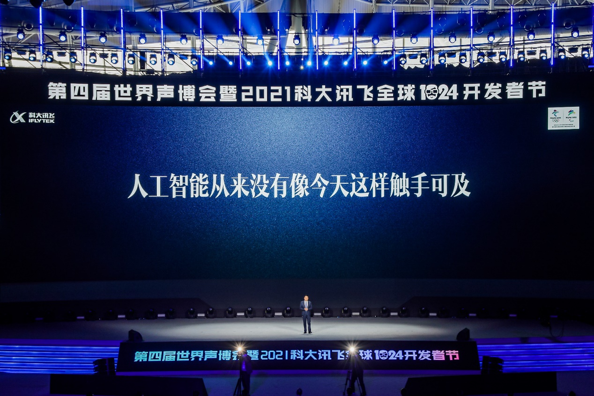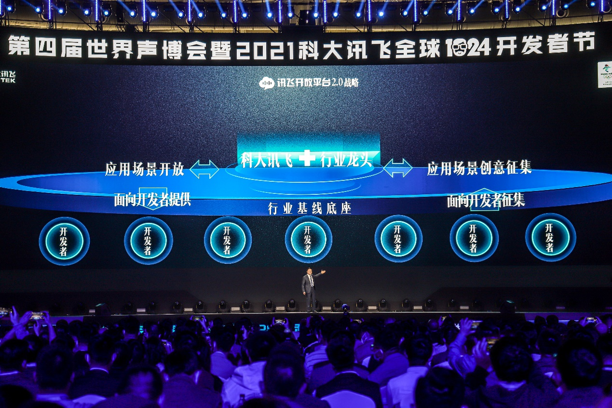 “AI共生·新征程”,10月25日上午,第四届世界声博会暨2021科大讯飞全球1024开发者节在合肥奥体中心开幕。本届开发者节主要由世界声博会开幕式、主论坛超级AI发布会、行业领袖大咖主题演讲、1024科博展、行业高峰论坛、百场线上分论坛、AI开发者大赛、颁奖盛典、AI公益活动、大学生创意路演、特别节目策划等丰富内容构成。
