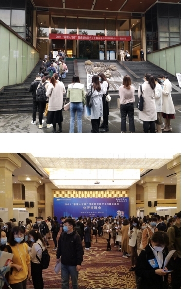 为深入实施市委市政府人才优先发展战略,进一步加强成都市卫生专业技术人才的培养和引进,推动卫生人才队伍建设,按照市人社局、市卫健委的工作部署,市卫健人才交流中心于2021年10月23至30日组织成都市市属15家公立医疗卫生事业单位、成都大学附属医院,以及高新区等14个区(市)县的57家公立医疗卫生单位在四川大学、重庆、武汉、大连举办了2021“蓉漂人才荟”暨成都市卫生事业单位公开招聘会,本次招聘会共计提供1260个卫生专业技术岗位,其中包含市属15家公立医疗卫生事业单位考核入编的587个岗位。