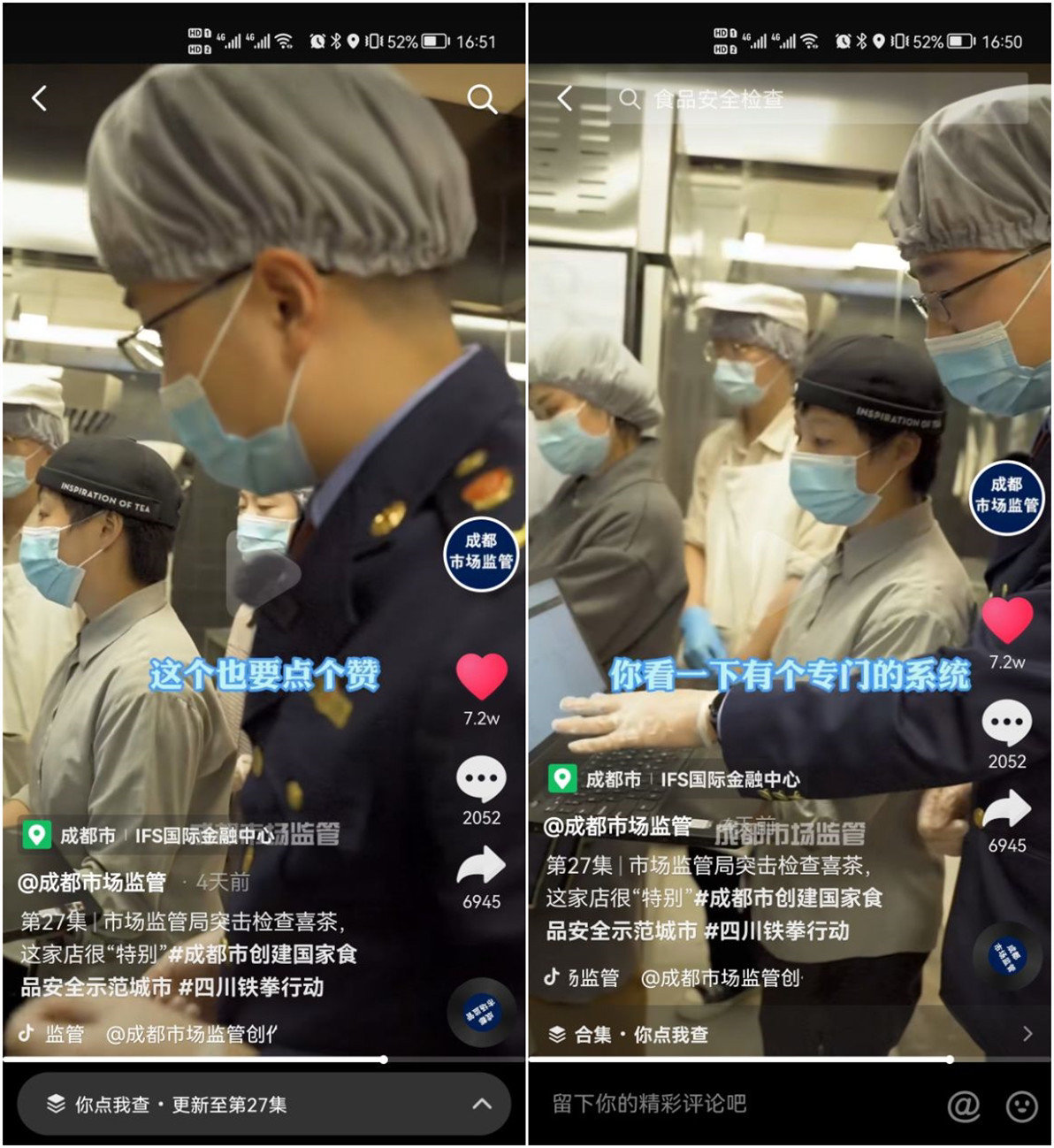 近日,成都市场监管局官方抖音号发布了一条视频,视频中身穿蓝色执法工作服的“督哥”通过镜头,带着网友来到了成都IFS喜茶门店。对该门店奶茶制作间、面包烤制操作间等进行了突击检查。