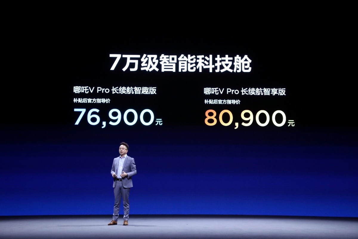 11月3日,“7万级智能科技舱”哪吒V Pro精智上市,新车包括长续航智趣版、长续航智享版两款车型,补贴后官方售价分别是7.69万元、8.09万元。
