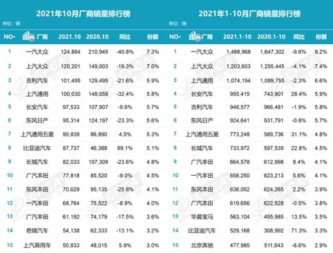 近日,中国汽车流通协会汽车市场研究分会乘用车市场信息联席会(简称乘联会)发布了10月乘用车市场总体分析数据。各大汽车品牌也陆续公布了10月的产销数据。综合来看,市场情况基本符合预期,车市产量达到198.7万台的规模,环比增长14.3%。车型方面,SUV和轿车均衡平稳发展,MPV市场呈平稳较好状态,总体累计来看,今年1至10月,乘用车产量达1652.3万辆,同比增长9%。