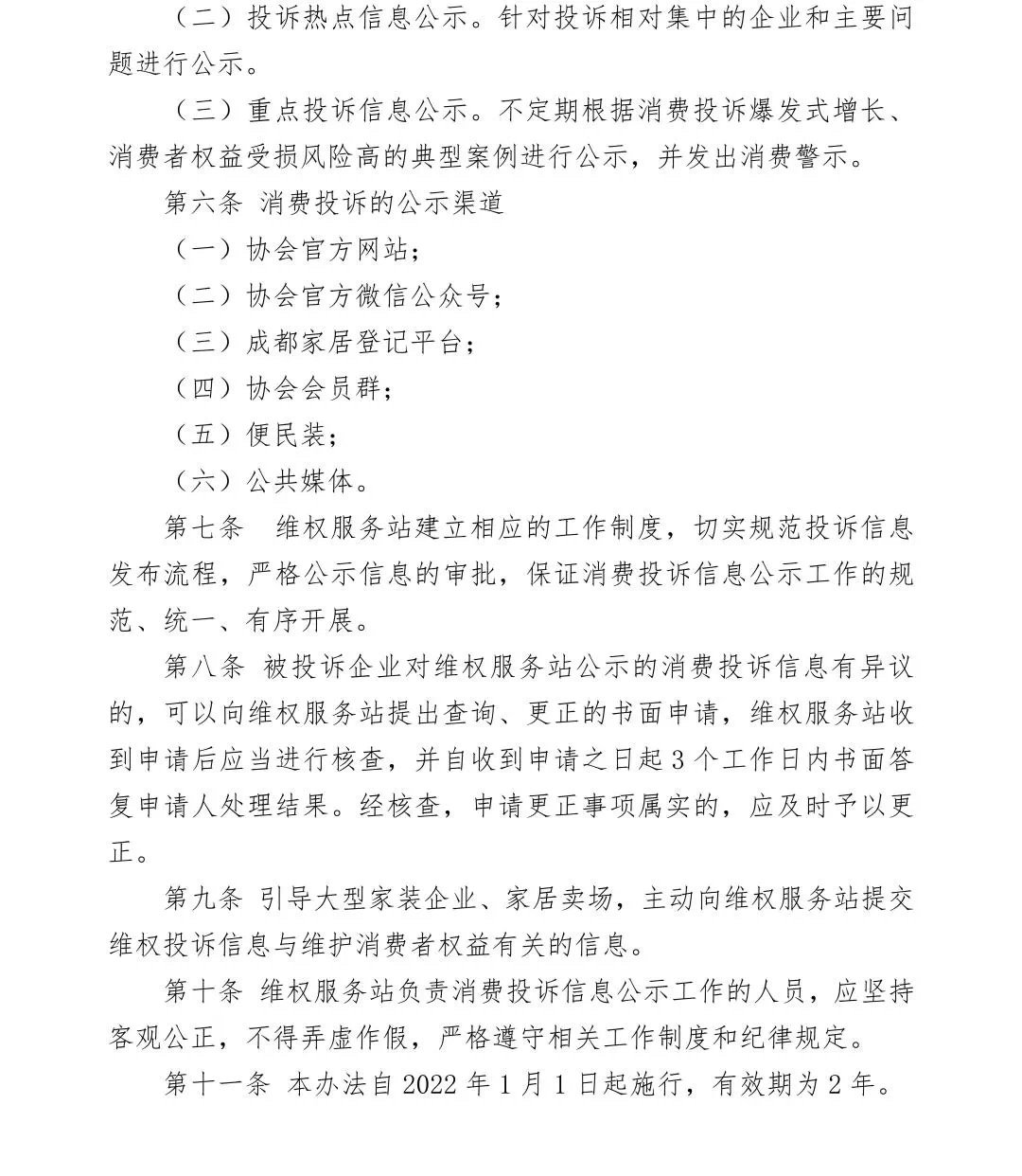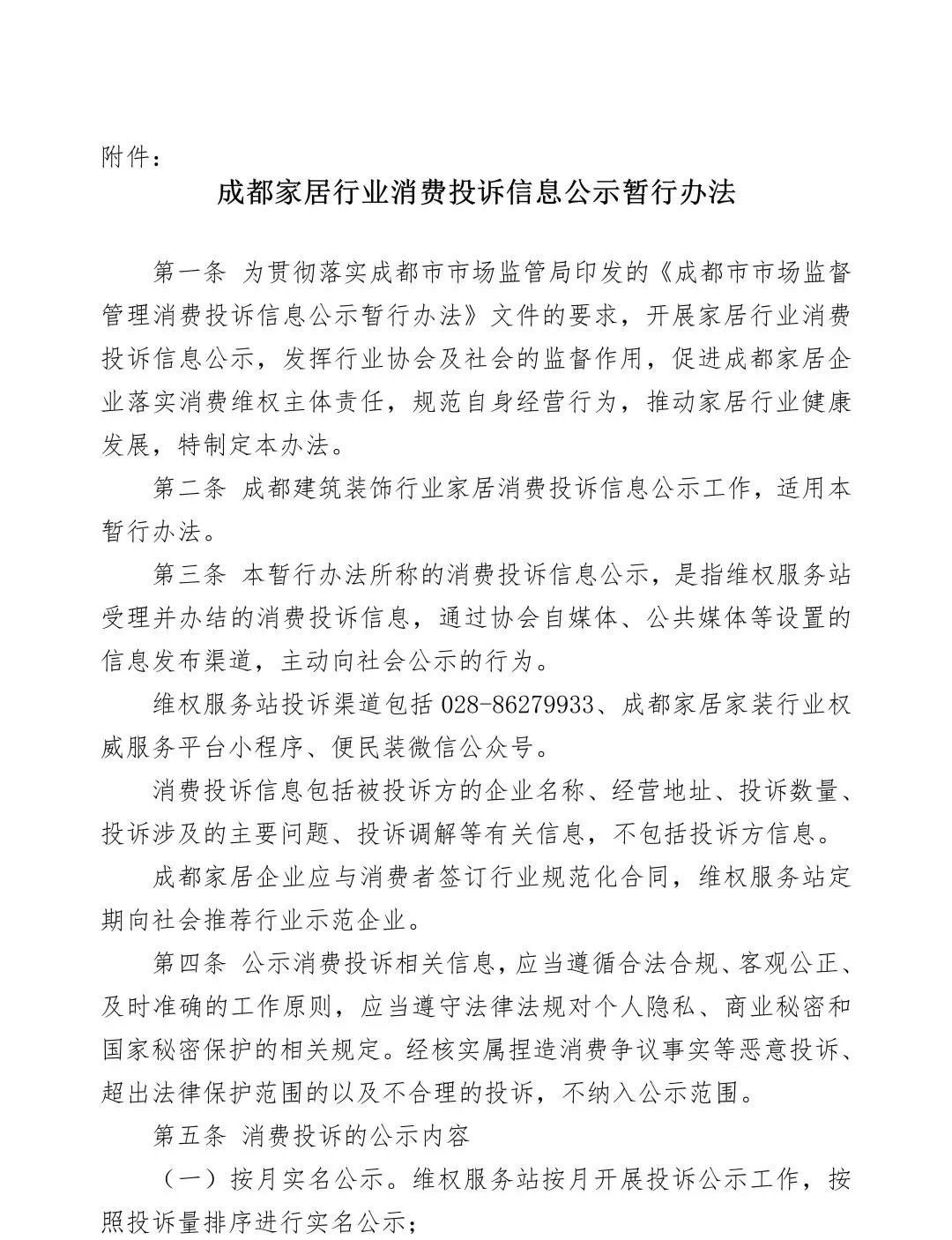 “2022年1月1日起,成都市建筑装饰协会12315消费维权服务站受理并办结的消费投诉信息将主动向社会公示”。11月25日,成都市建筑装饰协会12315消费维权服务站(以下简称“服务站”)发布了《成都家居行业消费投诉信息公示暂行办法》(以下简称“《办法》”)的通知。