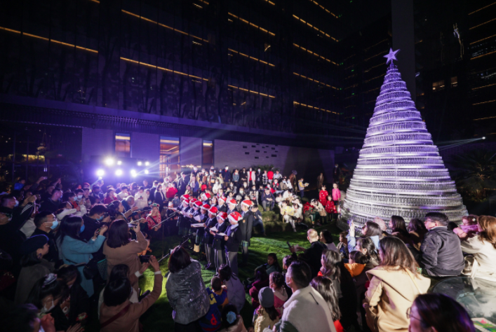 12月4日晚,位于成都远洋太古里的博舍酒店(以下简称“博舍”)点亮高达7米的环保圣诞树,同时推出公益圣诞市集,一系列精彩纷呈的节庆活动为“夜成都”增添一抹亮色,为成都打造一处崭新的夜间经济打卡地。