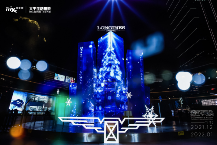 离地近8米、占地近100平方米的光影圣诞树装置格外醒目。据悉,这是由万象城联动浪琴表打造的“浪琴时光许愿树”,多个LED屏包裹其间,浪琴表以纯净美好的水晶为灵感,别具造型的水晶立柱错落林立于表盘上,打造一片梦幻时间森林。观众可扫码参与互动,将爱意、感谢、关心、告白投映在时光许愿树上,传递真挚情谊,也可将这份祝福分享至朋友圈,让亲朋好友共同感受节日温情。