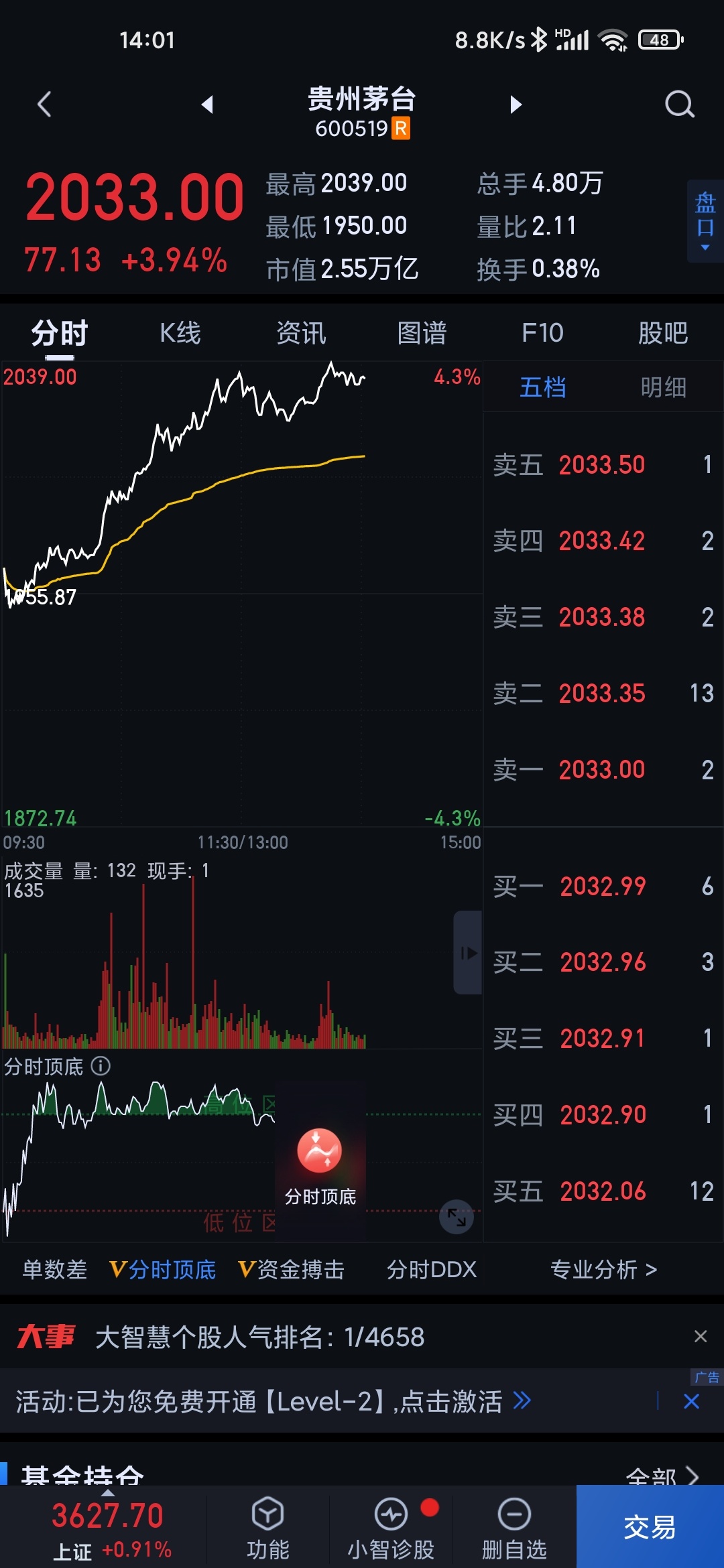 来自浙商证券的分析认为,预计2021-2023年贵州茅台收入增速分别为11.5%、16.2%、13.8%;净利润增速分别为12.4%、17.5%、15.5%;EPS分别为41.8、49.1、56.7元/股;对应PE分别为44、37、32倍。