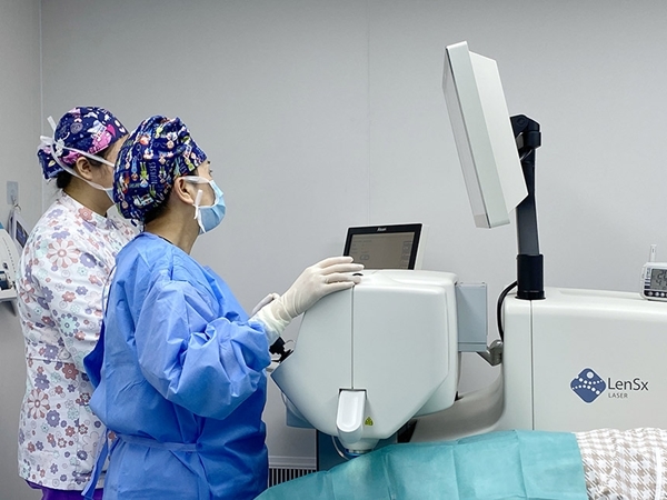 在艾院长开展手术时,刘主任化身“解说员”,全程解读了“无刀飞白+自然视觉三焦点人工晶体植入”的手术细节。据介绍,“撕囊”是手术中最为关键的一步,飞秒激光可以根据设定,精确的控制它的大小和居中性,对于术后远期效果来说,居中性越好,视觉效果就越好,“撕囊”的精准决定了人工晶体的植入是否起到最优的手术效果。这些解读很大程度的帮助患者了解手术,消除对手术恐惧的心理障碍。