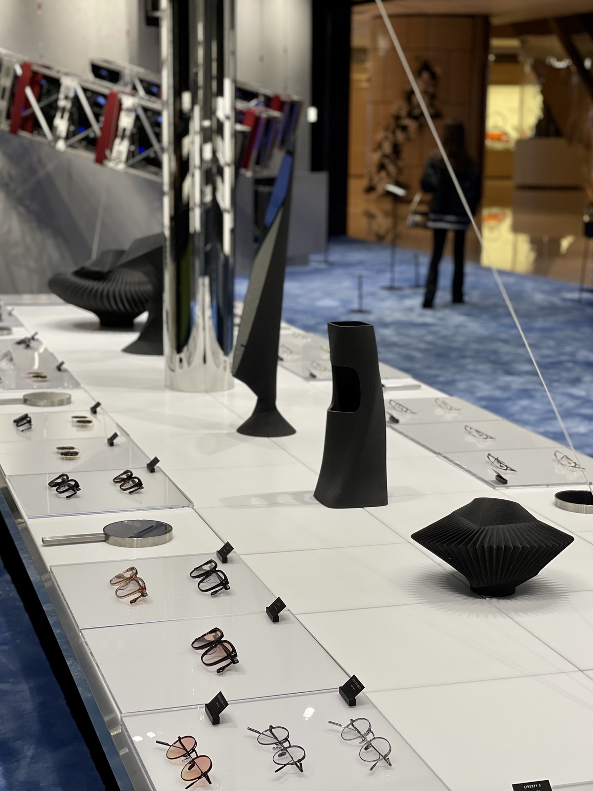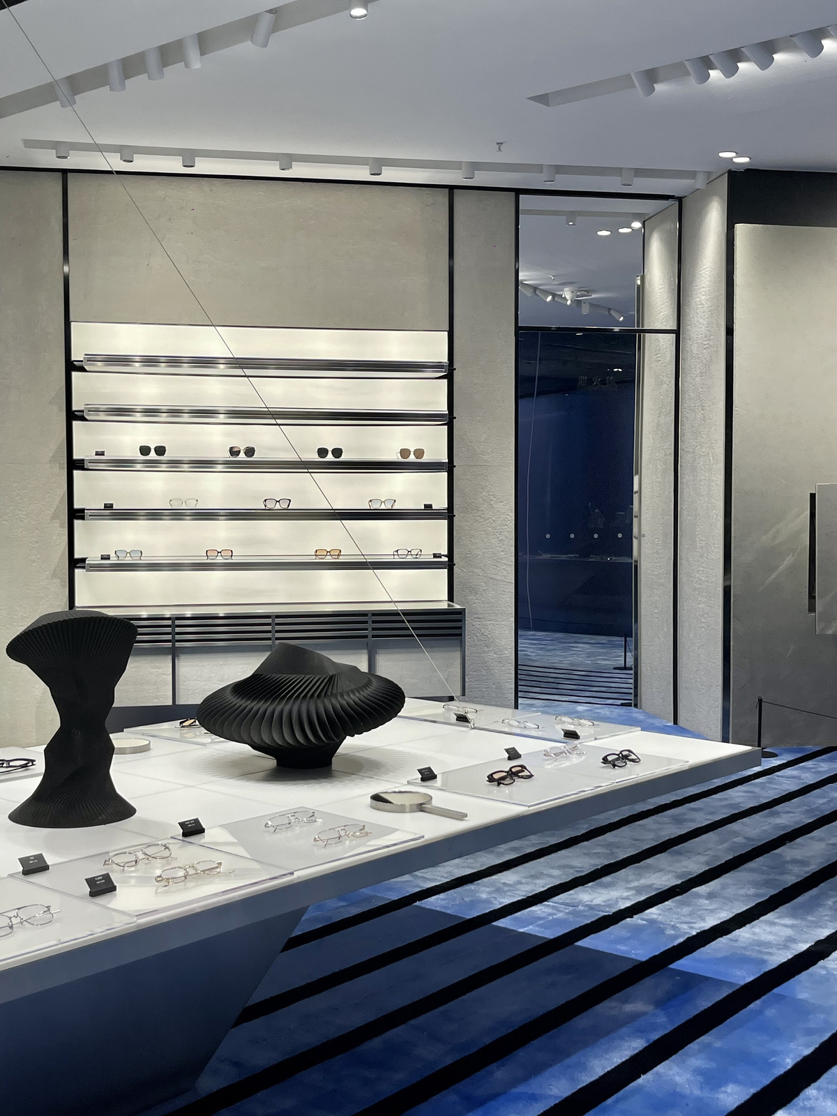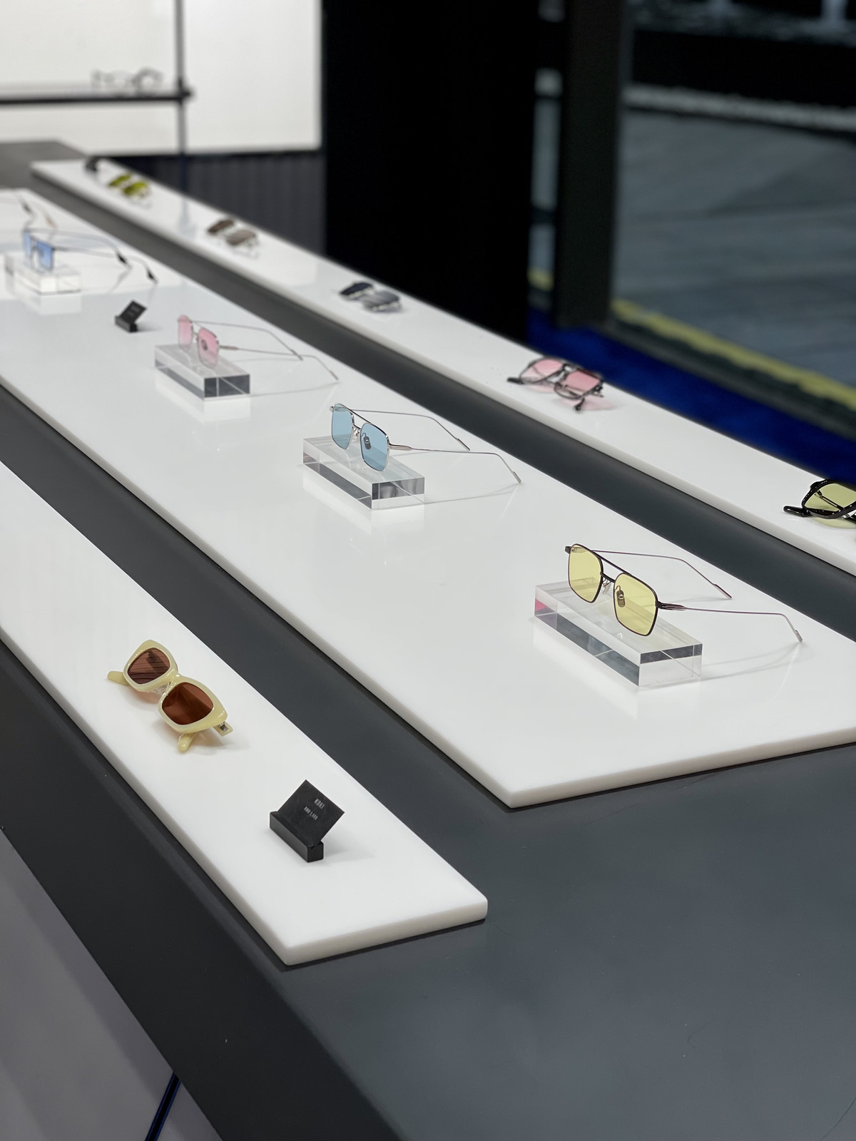 二层空间的多媒体数字屏幕和装置也在传达随机的概念。空间内GENTLE MONSTER的全新框架系列和经典黑超也通过“随机提取”的方式陈列,让每一位来访者亦成为这场随机提取游戏中的一部分,带来不同以往的试戴体验。