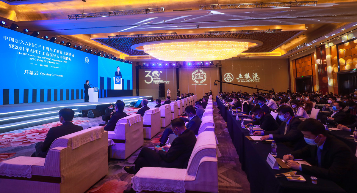 12月25日,中国加入APEC三十周年工商界主题活动暨2021年APEC工商领导人中国论坛在北京举行,五粮液作为论坛战略合作伙伴再度精彩亮相,以“大国浓香”致敬中国加入APEC三十周年这一重要时刻。第八代五粮液作为“中国加入APEC三十周年:‘致敬产业精神’工商界主题活动暨2021年APEC中国之夜”指定用酒,再一次以酒为媒架设起交流探讨、交融共享的文化桥梁,向世界传递中国优秀的传统文化和白酒文化。受五粮液集团公司、董事长李曙光委托,五粮液股份公司副总经理赵东参加活动。