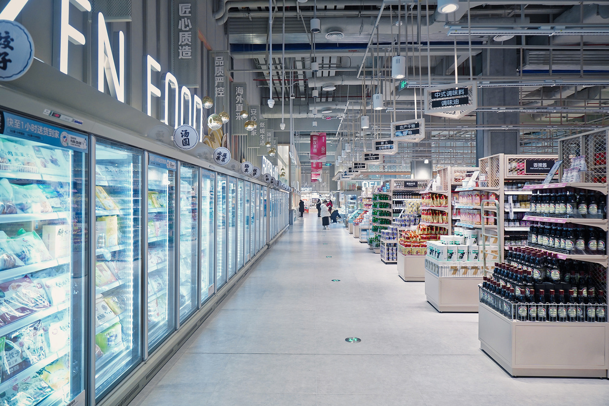 位于成都市高新区交子大道33号中国华商金融中心负一层的金融城食品生活馆,卖场营业面积约2600平方米,由生鲜、加工食品、非生鲜食品、面包、酒和餐饮六大区域构成。