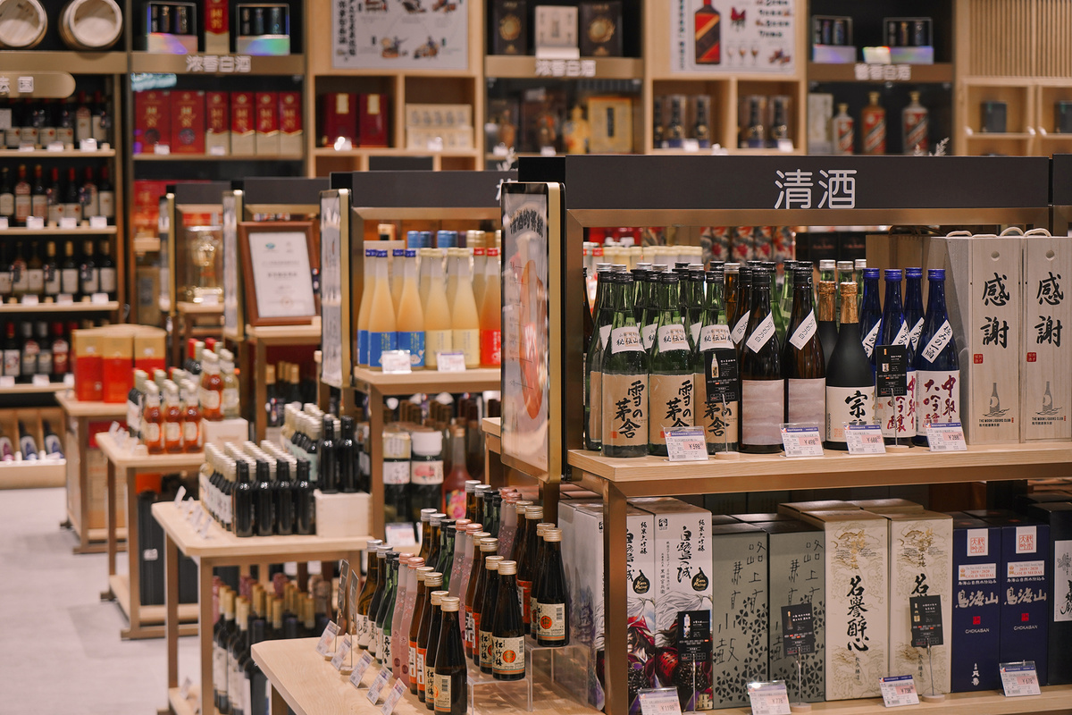 金融城店以周边职场商务人群及新家庭为主力客层,在购物场景的打造上特别定制了与以往门店不同的商品和服务。超过百米的立体冷柜墙,是金融城店的一个标志性打卡地,从獭祭冰淇淋、纳豆等日本网红食品,到速冻馄饨、预制菜等应有尽有。新开辟的伊藤酒藏区域,除了提供各种酒类的整瓶售卖服务,在调酒吧台,还能品尝单杯售卖的各式酒品。