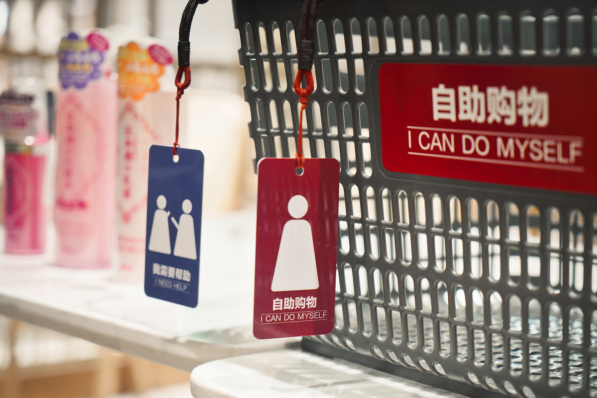 大件行李、冷冻、冷藏……各式寄存柜满足顾客多种需要。一张小卡片彰显了服务的用心,工作劳累了一天,想在购物时放松精神免受打扰,领取了“免打扰”的吊牌,即可实现无人打扰式购物。此外,金融城店新设购物车篮自助静电式消毒湿纸巾架,为顾客提供消毒凝胶及一次性手套。