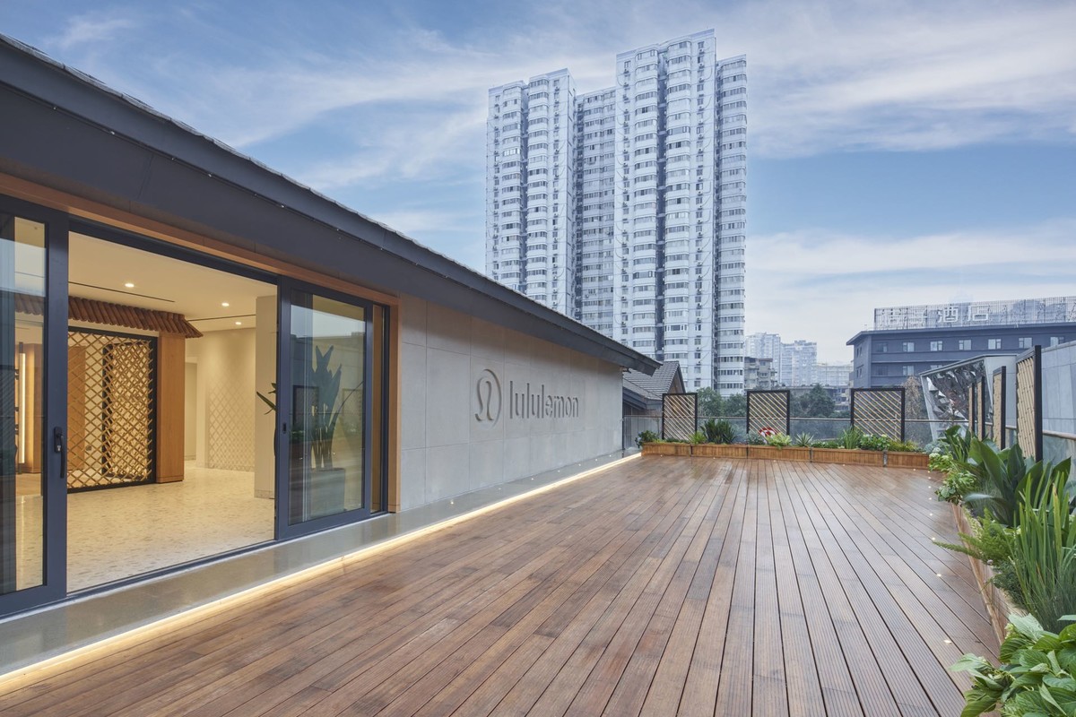 独栋零售空间内创意打造顶层阳光房和露台,可供瑜伽习练以及社区活动;偌大的三层门店,“成都元素”无处不在,趣味突出……