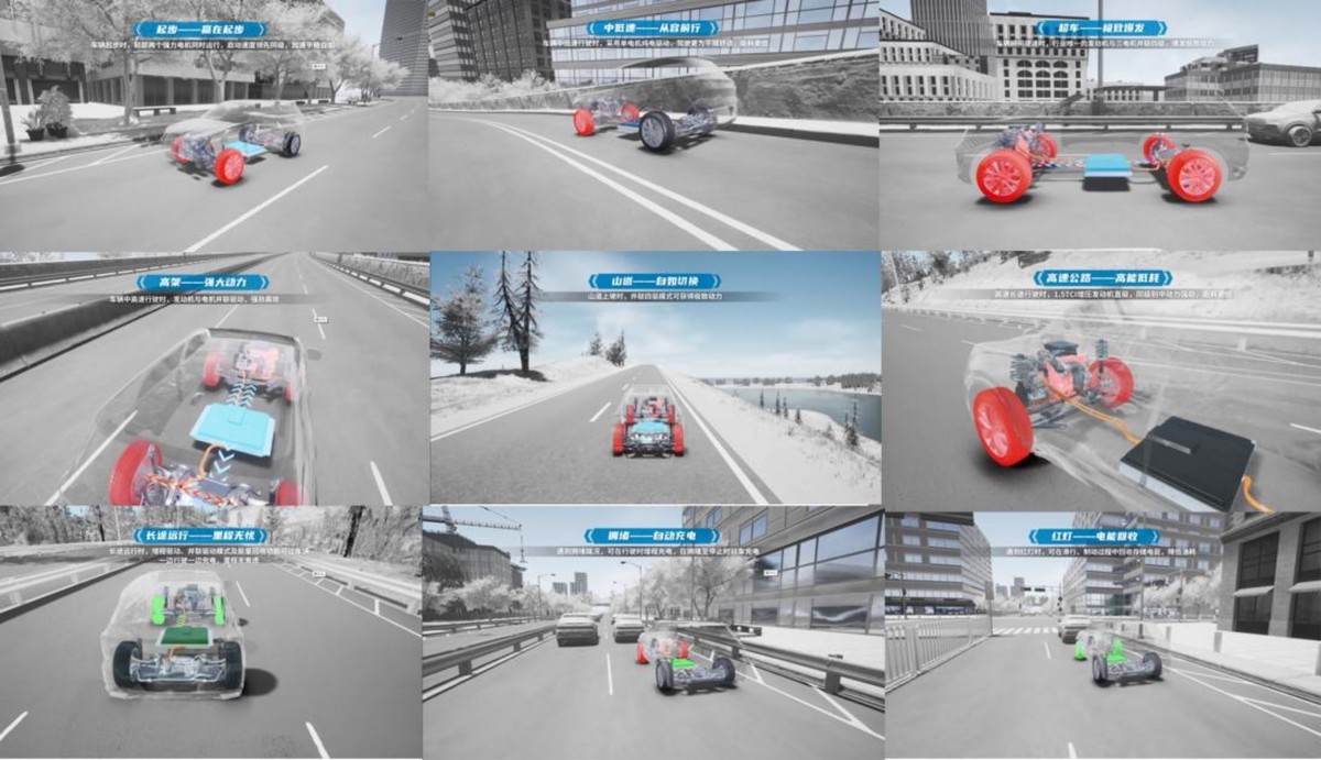 “9模”则是”星核动力ET-i全擎超混“系统所特有的9种工作模式的简称。其中包括单电机纯电动、双电机纯电动、发动机直驱、并联驱动、驻车充电、行车充电等9种驱动模式。他们可以在智能化系统的控制下,依据不同的行驶场景进行自由切换,以最适合、最具效率的模式去匹配不同的路况。