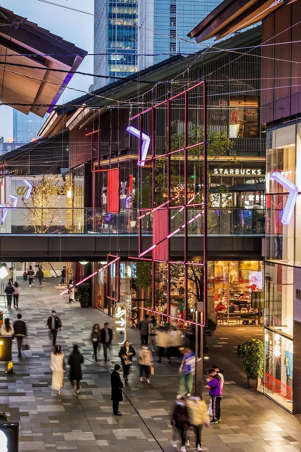 本次新春主题灯光艺术作品,由成都远洋太古里基于开放空间的特点定制打造。灯光艺术作品中矩阵和网格化的结构充满了现代感,赋予整个空间融合贯通及无限延伸的可能性。