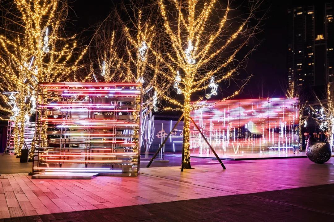 中里和东里的开放空间中,灯光艺术作品被垂直或平行地悬空放置,传递无限想象力,将空间通透性、立体感完美呈现。五彩斑斓的点阵灯光,与像素化的新春元素一同,打造“多元宇宙”中别样的新春节日氛围。