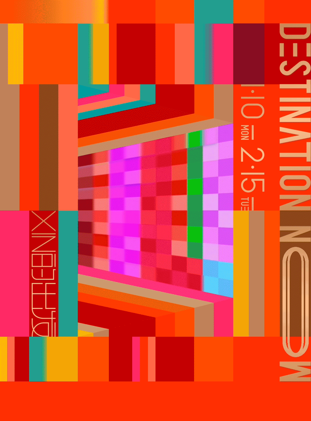 于“时光缝隙”感受色彩变幻、二维衍生三维再无限延伸至未知空间里的时空瞬时倾倒之景;