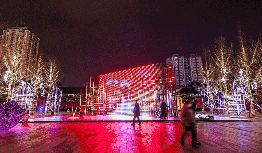 成都远洋太古里再添大型公共艺术展览作品群,此次的新春主题活动“XIN的出发”于1月10日正式开启,极具科技感的灯光艺术作品再为里巷增添新魅力。