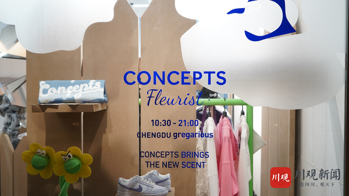 这是新生代品牌与成都城市更新项目的“互融”,满足的是Z世代年轻人对时尚的精神诉求。展览两侧是位于“gregarious.”的多个限时快闪空间,ok center联合成都本土买手店“CLAP_Chengdu”呈现的快闪店正在开放,“CONCEPTS”成都首站限定店、“Element生活元素”成都首店均落户于此。