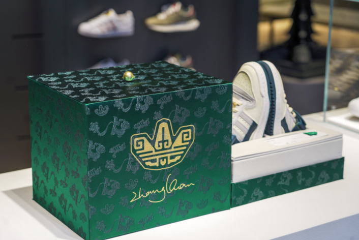 受原本马家巷禅院屋顶门檐上十二生肖雕塑启发打造的定制作品,落地展示于店铺各处景观中。店内以品牌和成都当地特色文化元素为灵感,打造了不同特色的体验区域:知更鸟蓝色调的adidas Originals新款Blue Version首个产品系列专属区域、adidas Originals再次和中国当代先锋艺术家张权合作为成都量身定制且在全球限量发售仅300双的新品城市限定配色Forum 84 Low鞋款专区、以及由艺术家Keiichi Tanaami(中文:田名网敬一)创作的三叶草艺术桌及艺术装置区域,展现多元与探索的潮流精神。