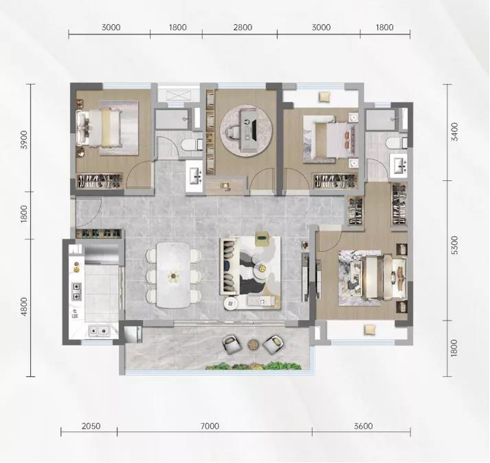 主推的136㎡四房横厅户型,更做到了约7米阳台面宽,进深约1.8米,会客空间达到约37㎡,整个客厅看起来极其大气通透,四房设计能满足一家三代所需,户型设计十分抗打,总价也仅需189万元起。