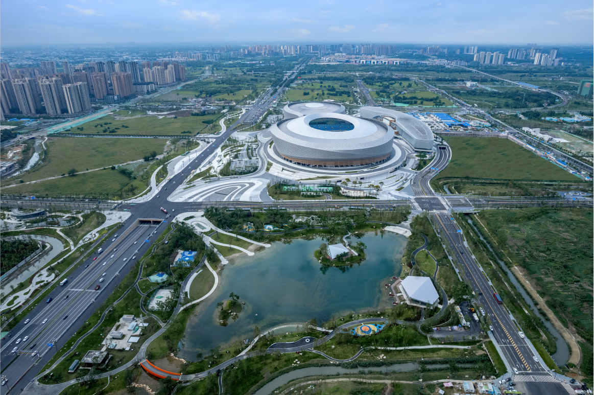 项目采用了先进的TOD+EOD的规划理念。以TOD为导向——地铁5号线贯穿南北,可快速到达成都东站、双流机场等各大交通枢纽,一站式通达市中心、城南核心腹地,构建起全城1小时交通圈。以EOD为导向——践行公园城市理念,将自然引入城市,实现“城市中的花园,花园中的车站”。南面毗邻千亩毗河生态湿地公园,楼下即是1.8万方市政公园,具有极佳的自然生态资源。