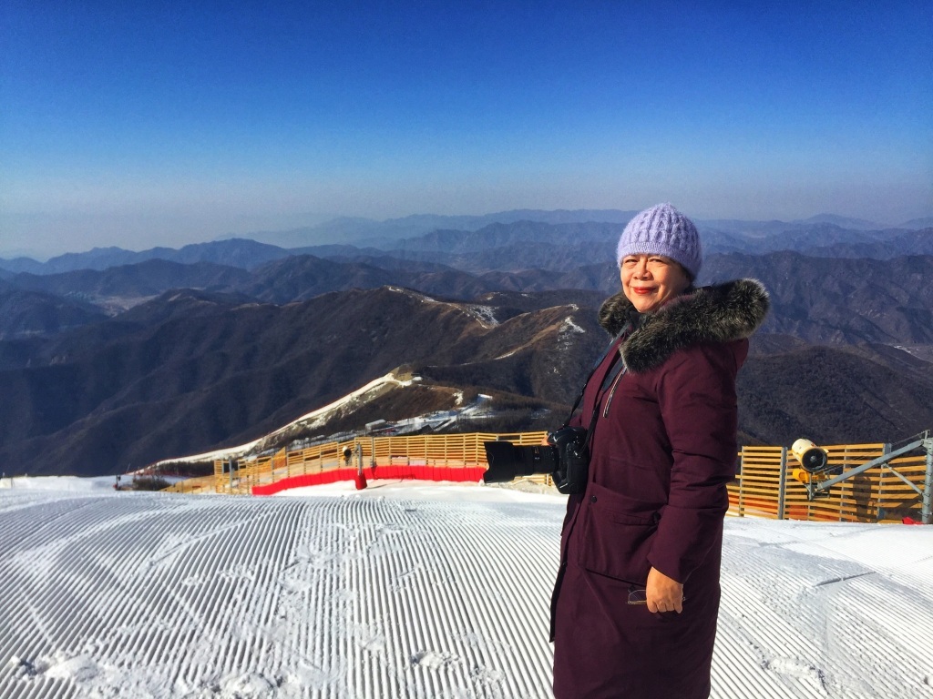 孙晶岩在延庆高山滑雪赛道山巅采访。