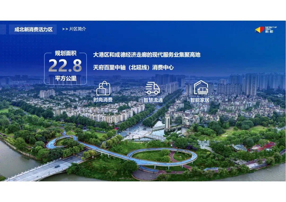 成北新消费活力区规划为大港区和成德经济走廊的现代服务业集聚高地,也是天府百里中轴(北延线)消费中心,规划面积为22.8平方公里,包括北部商贸城、斑竹园、大丰等板块。位于大丰板块的龙湖锦宸天街、大都汇保利广场两大商业中心已于去年相继开业,凤凰山体育公园现也已落成。