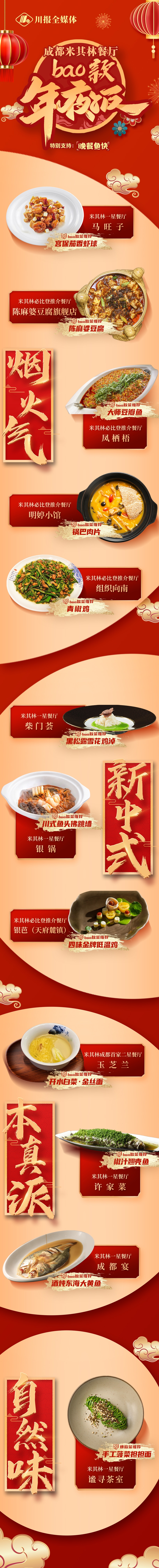 距离春节到来还有2天。1月28日,四川日报全媒体新春特别策划“12道成都米其林餐厅‘bao款’年夜饭”线上推荐活动,甄选并联动12家成都米其林指南上榜餐厅,遴选12道“bao款”米其林大餐,组成2022新春成都米其林级年夜饭种草菜单,带领大家共赏不一样的年味儿。