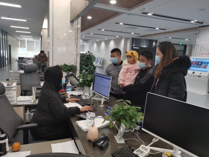 在工作人员的带领下,冷女士在大厅4楼办理了新生儿户口,随后在大厅2楼快速办理了新生儿医保缴存登记,实现了办事仅进“一扇门”。