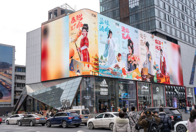 流光溢彩,一步一景,春熙灯市在春节期间盛装启幕,极具蓉城文化特色的沉浸式灯组闪耀春熙,与临街的路灯、店铺招牌等交相辉映,重现了陆游笔下《丁酉上元》中记载的成都灯会“鼓吹连天沸五门,灯山万炬动黄昏”的盛况,美轮美奂。活动现场多点位多品类的互动灯光装置解锁潮流新玩法,春熙灯市成为春节期间成都的人气夜游打卡目的地,以现象级的文化活动成功赋能春熙路国际化都市商圈建设。