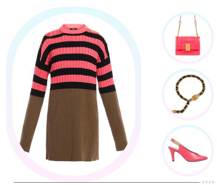 花花发现成都IFS里的BALMAIN上新了,2022早春系列的粉色要素还不少呢。粉色条纹针织裙搭配同色系BALMAIN1945系列小牛皮手袋和粉色TARA高跟鞋,整体造型简单又大方。